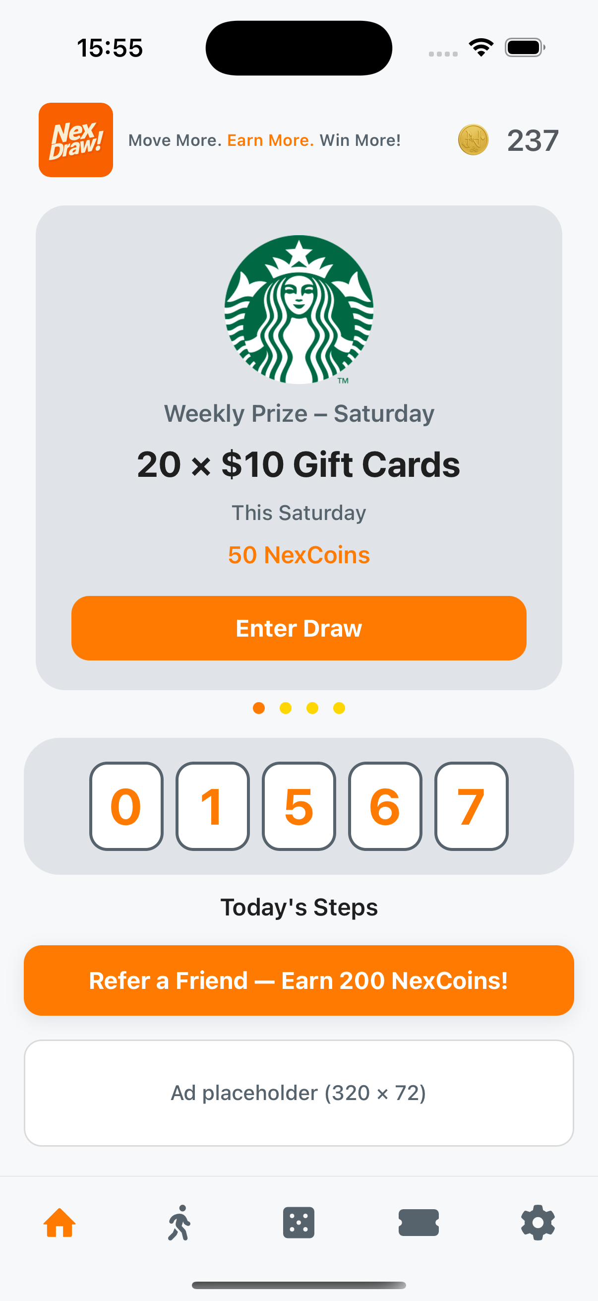 Move more, earn NexCoins, and enter reward draws — all by staying active.