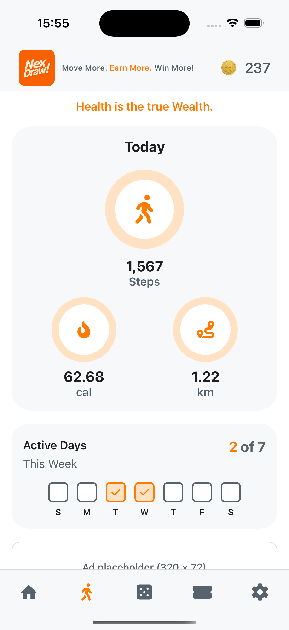 Every verified step helps you earn NexCoins — NexDraw's in-app reward points.